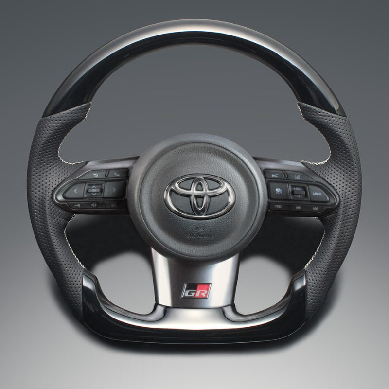ユーロステッチ採用 (ピアノブラックxシルバーステッチ) 純正交換ガングリップステアリング GRヤリス 10系 LS206 GR専用 ヤリス/ヤリスクロス不可