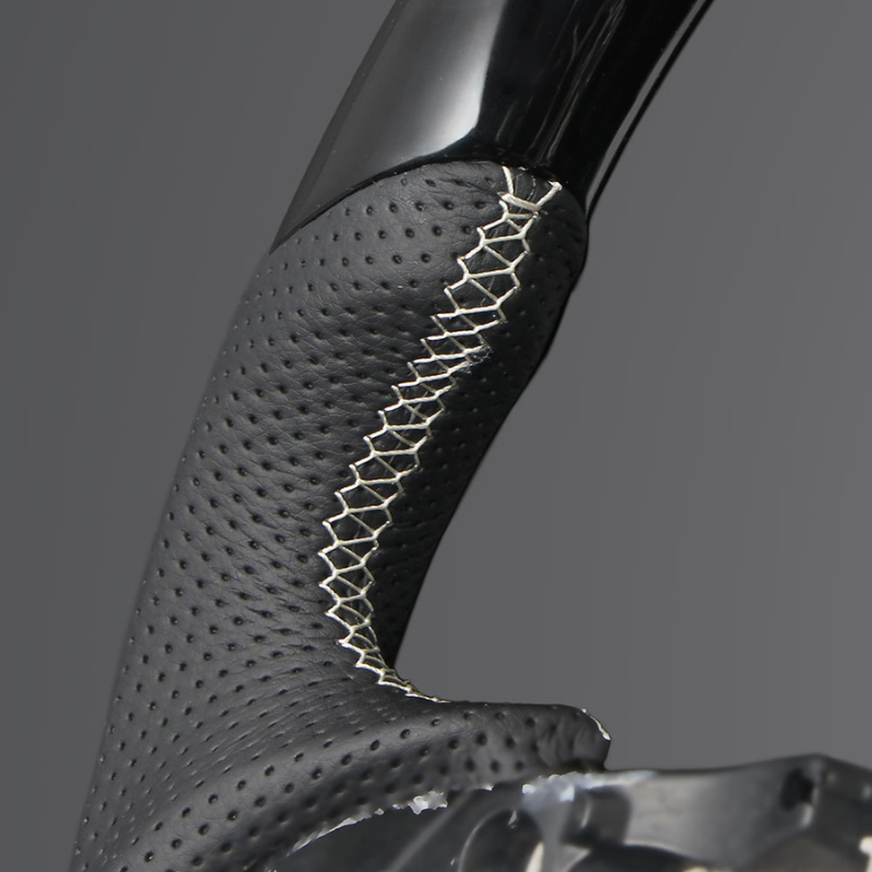 高品質の証ユーロステッチ採用 (カーボン調xシルバーステッチ) 純正交換ガングリップステアリング GRカローラ 10系 LS207 GR専用 ヤリス/ヤリスクロス不可