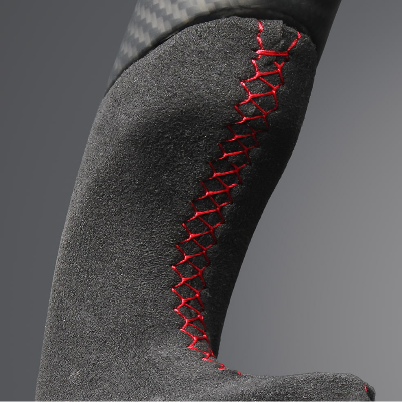 柔らかさ、耐久性、通気性、高級感が特徴であるアルカンターラレザーを使用し、グリップ部分はスポーツタイプ(ガングリップタイプ)で快適な操作性を実現。