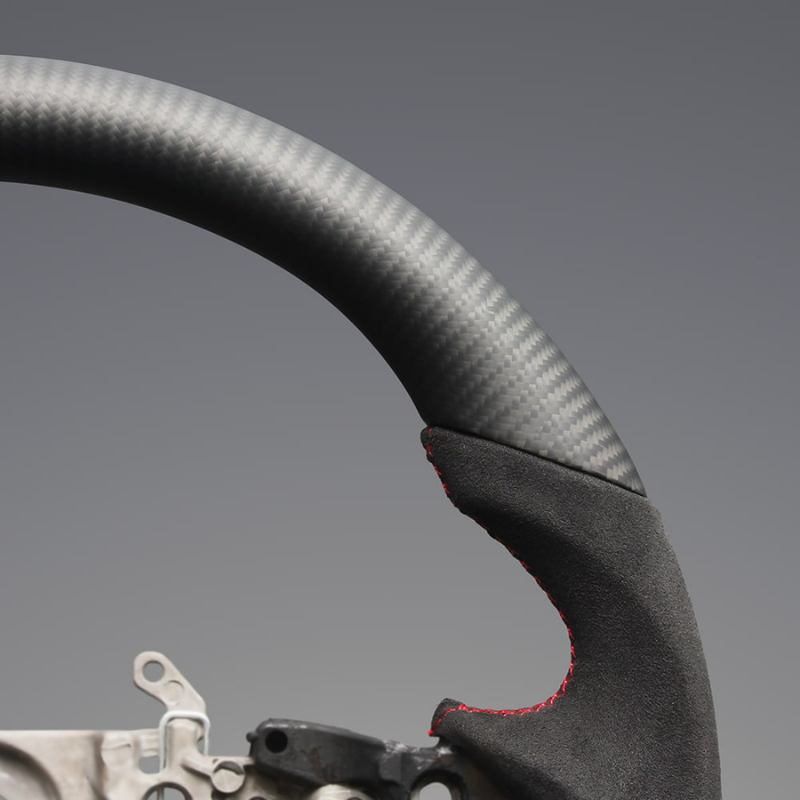 ステアリング部分は本物のカーボン素材を贅沢に使用し、見た目の美しさと実用性を兼ね備えています。