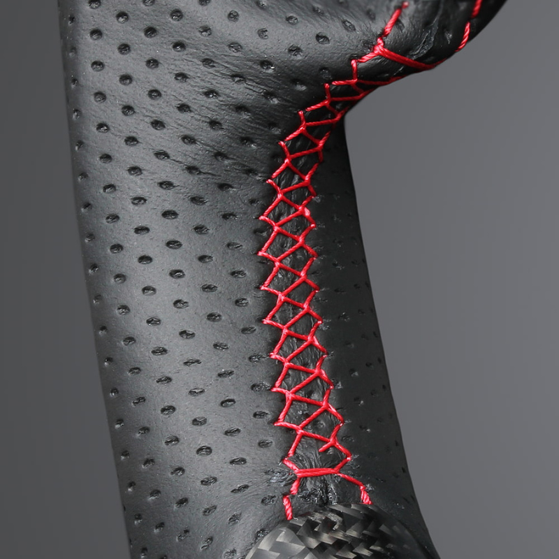 柔らかさ、耐久性、通気性、高級感が特徴であるアルカンターラレザーを使用し、グリップ部分はスポーツタイプ(ガングリップタイプ)で快適な操作性を実現。