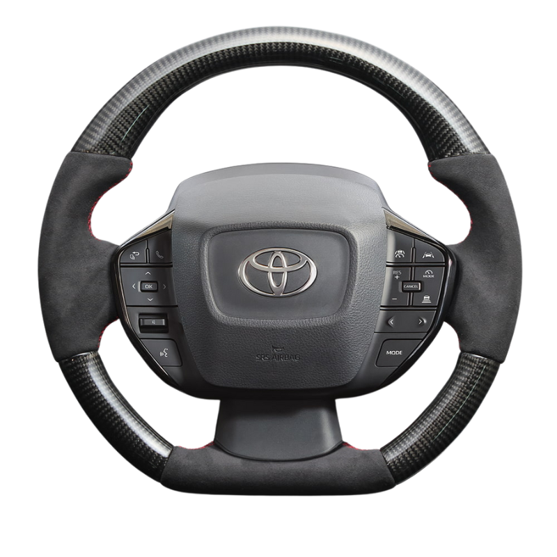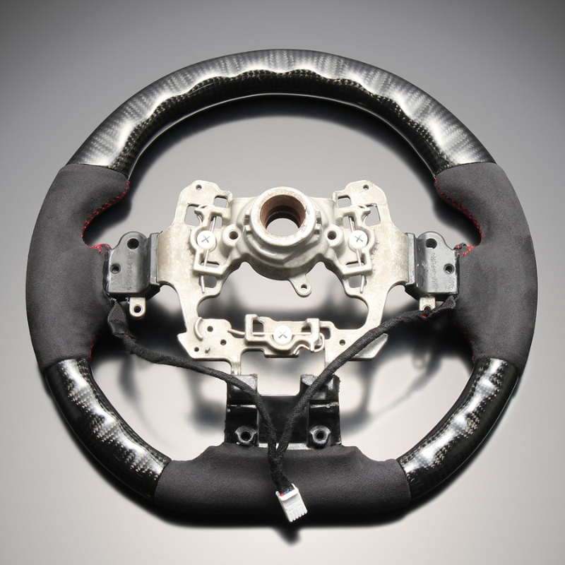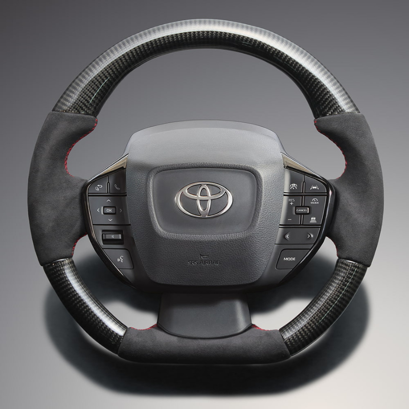 最上位モデル (艶ありリアルカーボン×アルカンターラBK×レッドユーロステッチ) D型ガングリップステアリング プリウス 60系 Gグレード専用 LS215
