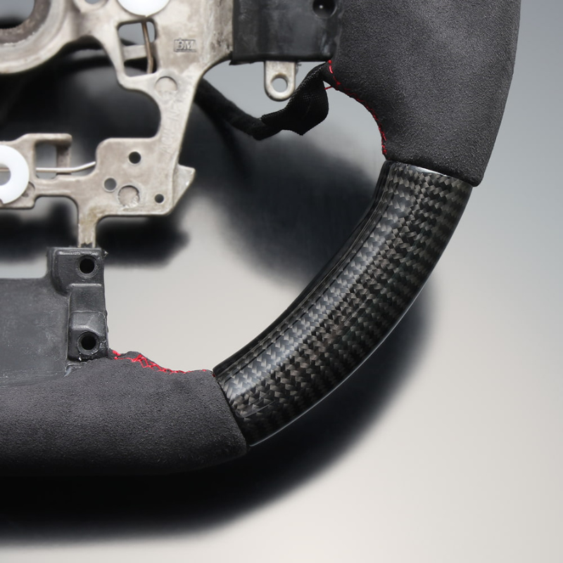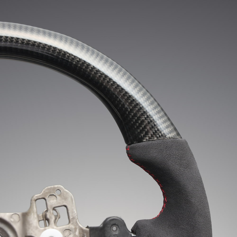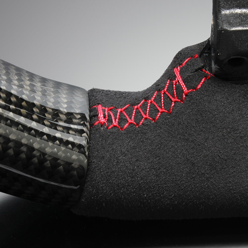 ステアリング部分は本物のカーボン素材を贅沢に使用し、見た目の美しさと実用性を兼ね備えています。