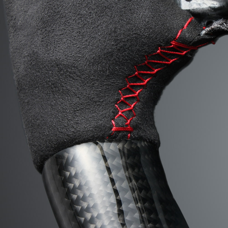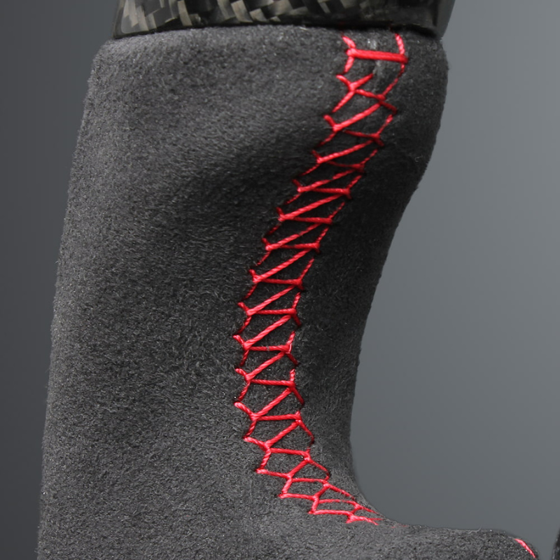 柔らかさ、耐久性、通気性、高級感が特徴であるアルカンターラレザーを使用し、グリップ部分はスポーツタイプ(ガングリップタイプ)で快適な操作性を実現。