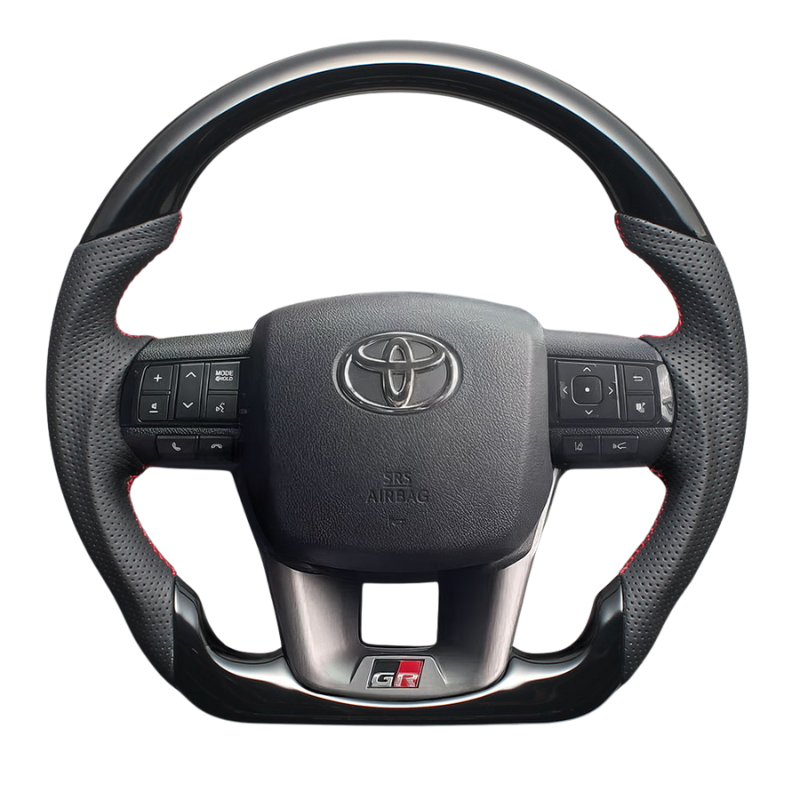 高品質の証ユーロステッチ採用 (ピアノブラックxレッドステッチ) 純正交換ガングリップステアリング ハイラックス 120系 H29/9- LS219 GRスポーツ取付可