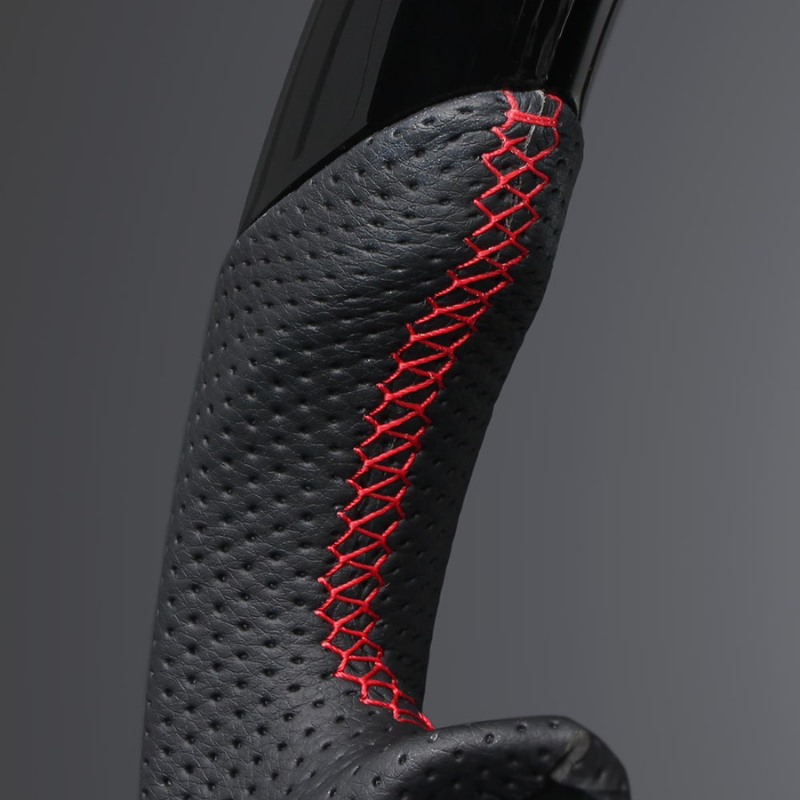 高品位PVCレザーを使用し、通気性を考慮したパンチング加工を施したグリップ部分はスポーツタイプ(ガングリップタイプ)で快適な操作性を実現。