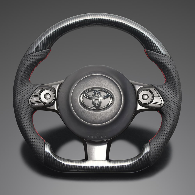 高品質の証ユーロステッチ採用 (カーボン調xレッドステッチ) 純正交換ガングリップステアリング 86/GR86 ZN6/ZN8 H28/-R6/4 LS241