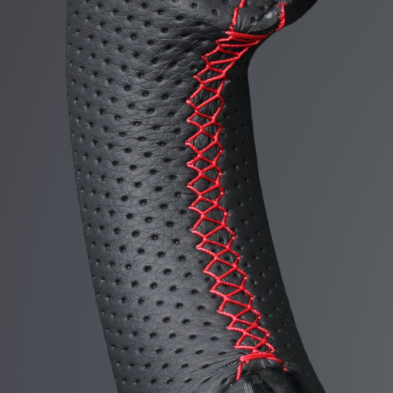高品位PVCレザーを使用し、通気性を考慮したパンチング加工を施したグリップ部分はスポーツタイプ(ガングリップタイプ)で快適な操作性を実現。