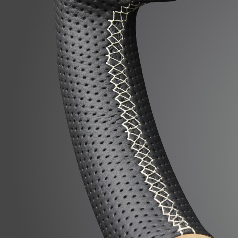 高品位PVCレザーを使用し、通気性を考慮したパンチング加工を施したグリップ部分はスポーツタイプ(ガングリップタイプ)で快適な操作性を実現。