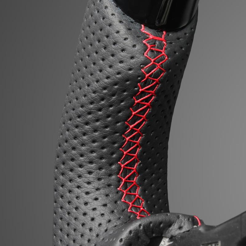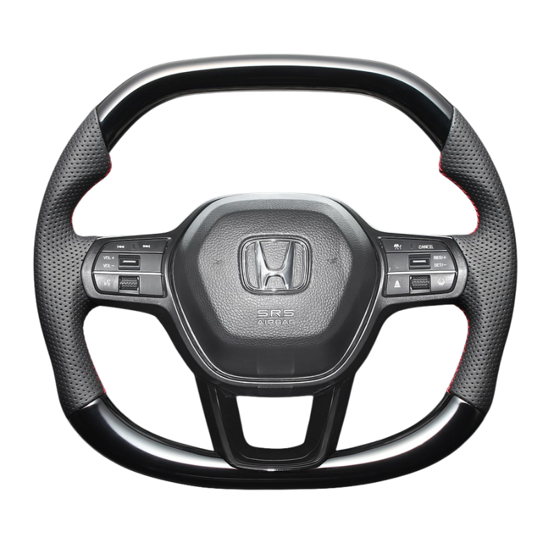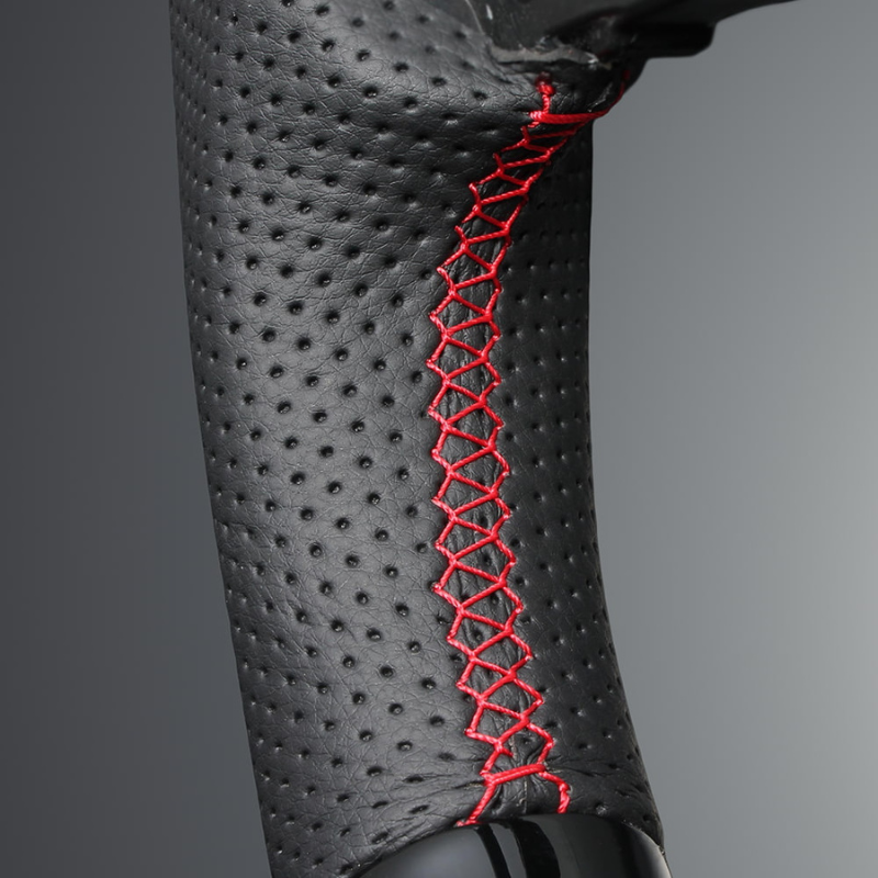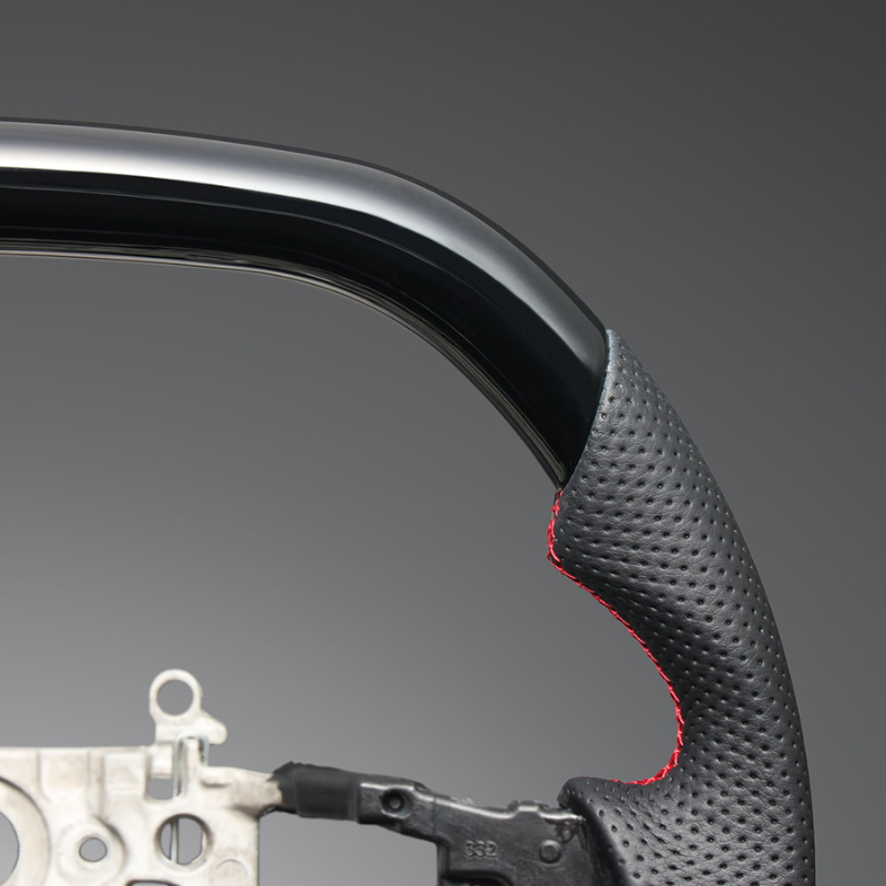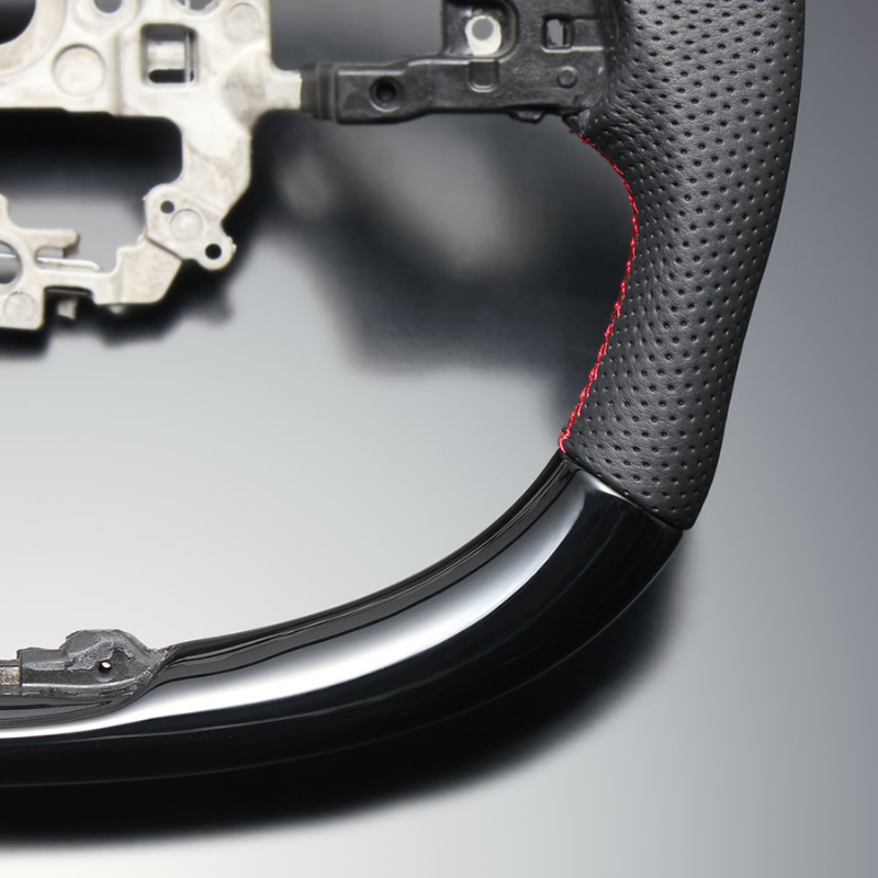 高品質の証ユーロステッチ採用 (ピアノブラックxレッドステッチ) 純正交換ガングリップステアリング シビック FL1/4/5 R3/9- LS272