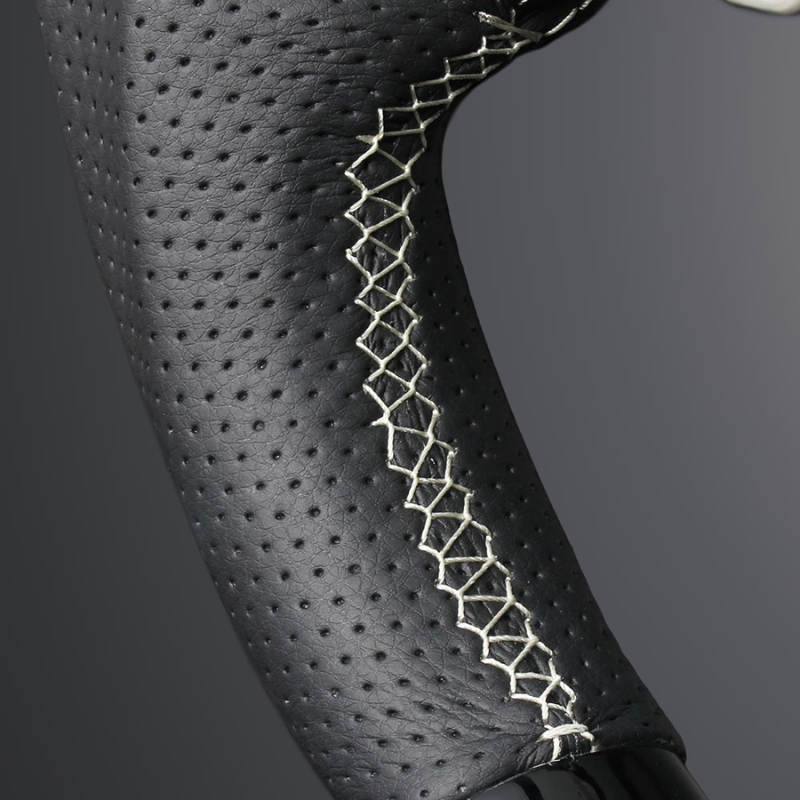 高品質の証ユーロステッチ採用 (ピアノブラックxシルバーステッチ) 純正交換ガングリップステアリング アルト HA37/97 R3/12- LS281