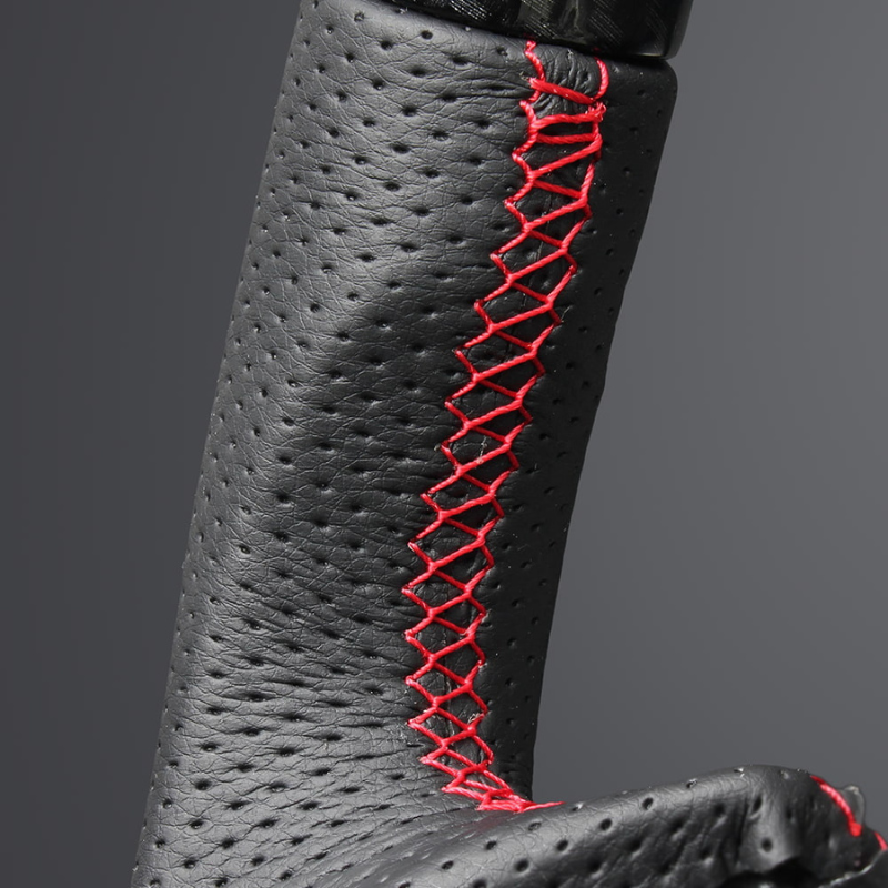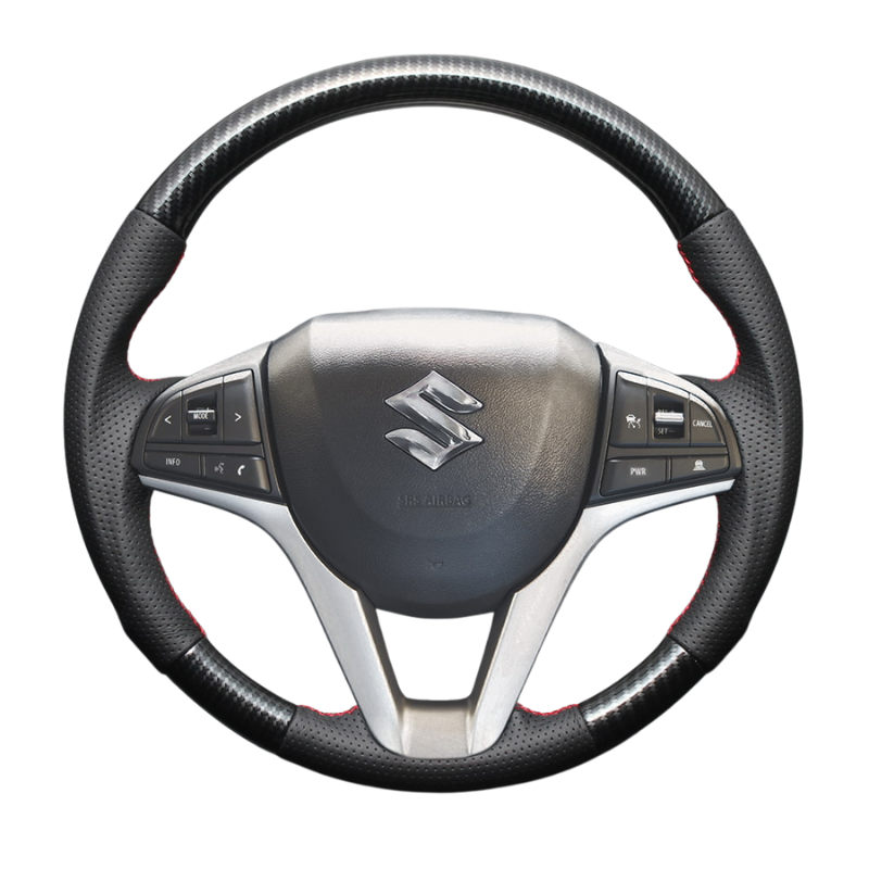 高品質の証ユーロステッチ採用 (カーボン調xレッドステッチ) 純正交換ガングリップステアリング ハスラー MR52/92 R2/1- LS282