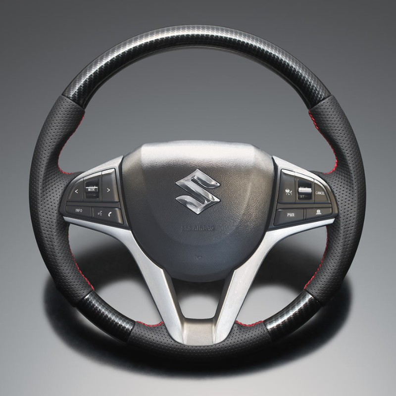 高品質の証ユーロステッチ採用 (カーボン調xレッドステッチ) 純正交換ガングリップステアリング ソリオ/バンディット MA46S/MA36S R2/1- LS282