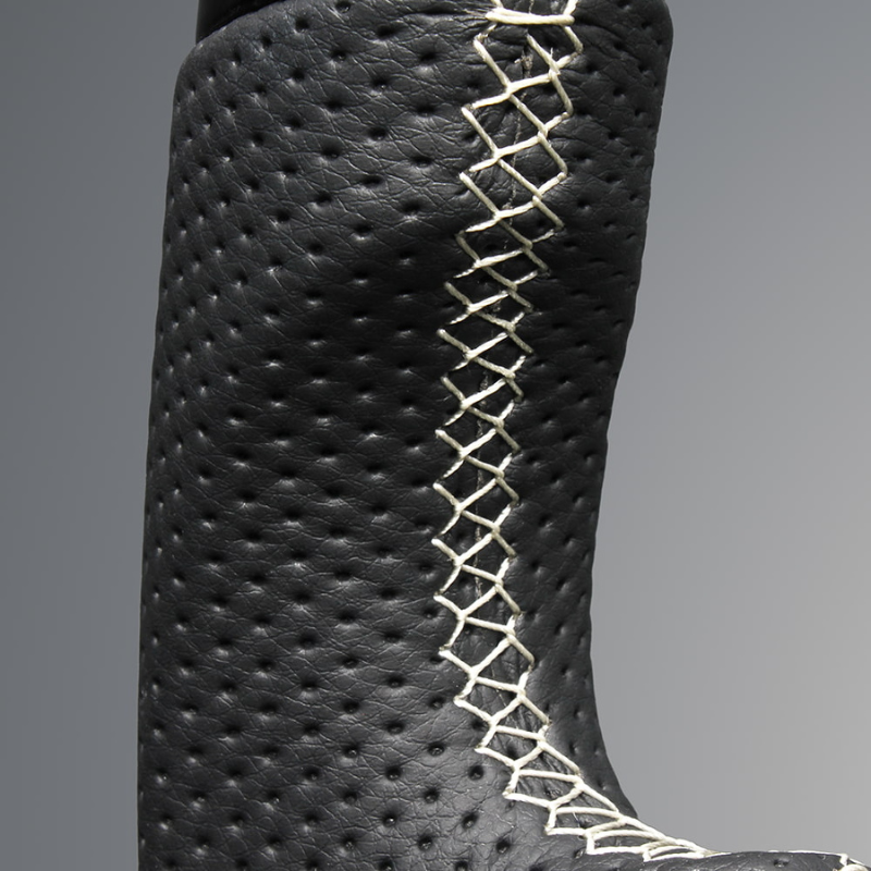 高品位PVCレザーを使用し、通気性を考慮したパンチング加工を施したグリップ部分はスポーツタイプ(ガングリップタイプ)で快適な操作性を実現。
