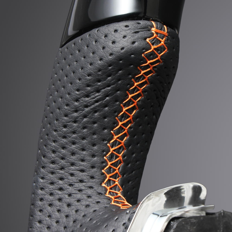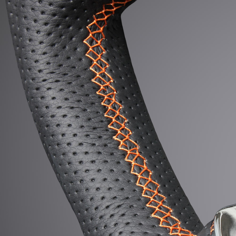 高品質の証ユーロステッチ採用 (ピアノブラックxオレンジステッチ) 純正交換ガングリップステアリング デリカD5 CV系 前期 H19/1-H30/12 LS295