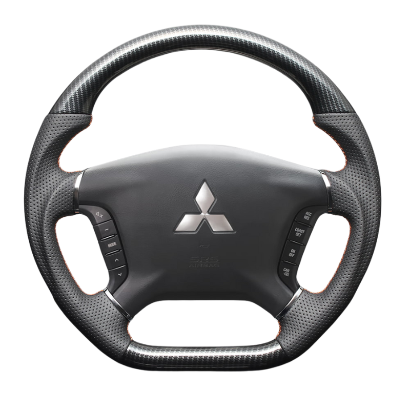 高品質の証ユーロステッチ採用 (カーボン調xオレンジステッチ) 純正交換ガングリップステアリング デリカD5 CV系 後期 R1/2- LS300