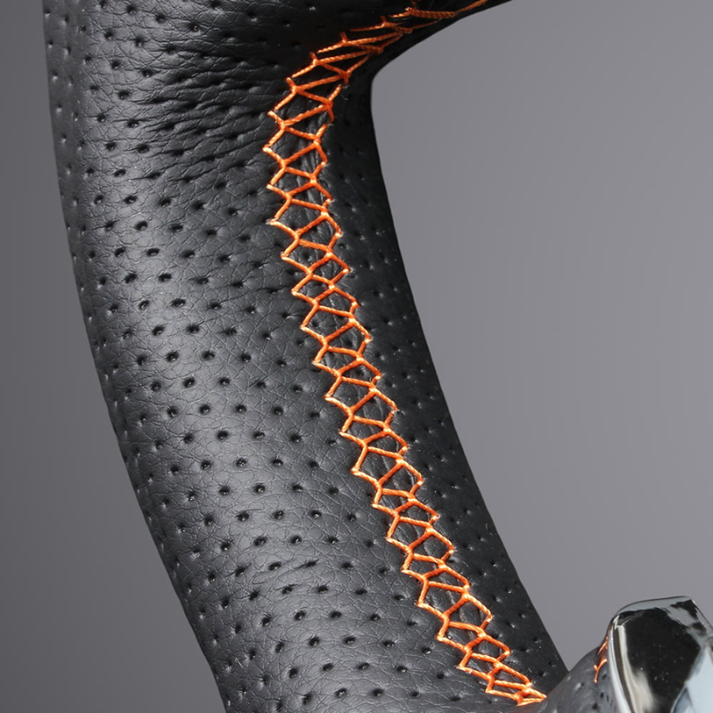 高品質の証ユーロステッチ採用 (ピアノブラックxオレンジステッチ) 純正交換ガングリップステアリング デリカD5 CV系 前期 H19/1-H30/12 LS295