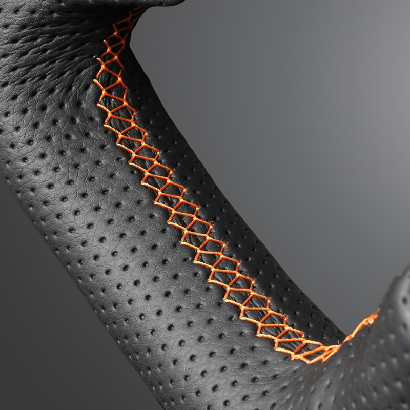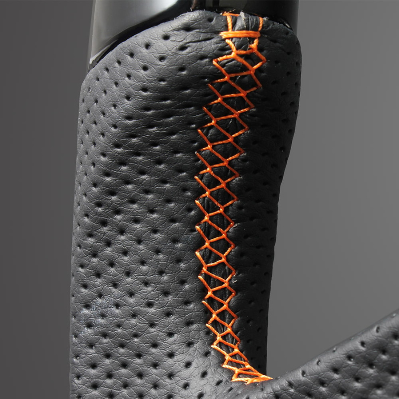 高品質の証ユーロステッチ採用 (ピアノブラックxオレンジステッチ) 純正交換ガングリップステアリング デリカD5 CV系 前期 H19/1-H30/12 LS295