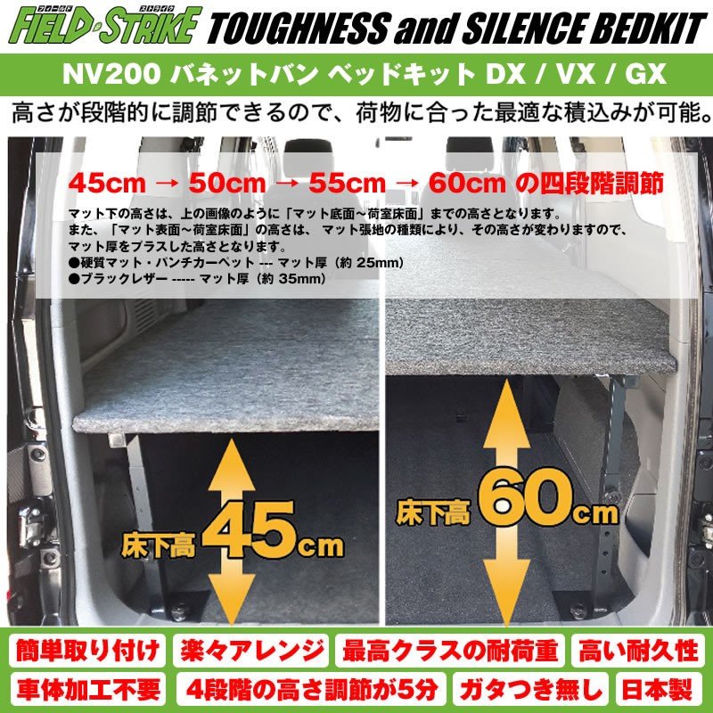 【硬質マットタイプ/重歩行用ダークウッド】NV200 バネットバン ベッドキット DX / VX / GX 二列目6:4分割シート車用 傷に強い Field Strike