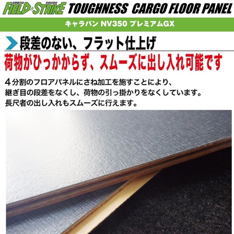 職人が細部までこだわり、ひとつひとつ丁寧に造りあげている、NV350キャラバン専用設計のフルフロアパネルです。