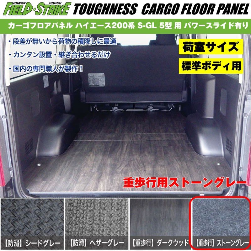 標準ボディ【荷室用 / 重歩行用ストーングレー】Field Strike カーゴフロアパネル ハイエース 200 系(H29/12-) S-GL 5型 6型用 パワースライド有り