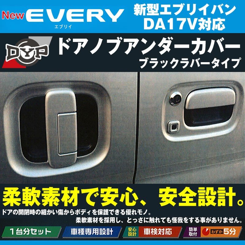【ひっかき傷防止/ブラックラバータイプ】ドアノブアンダーカバー 新型 エブリイ バン DA17 V (H27/2-) DYPオリジナル ドアノブの保護に!
