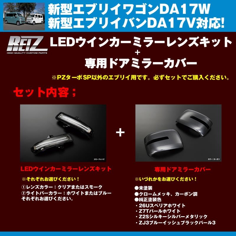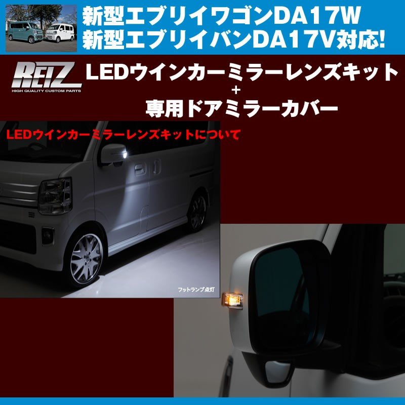 REIZ製、新型エブリイワゴン/新型エブリイバン用LEDウインカーミラーレンズと専用ドアミラーカバーのセットです。