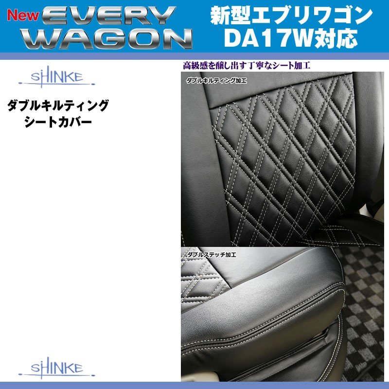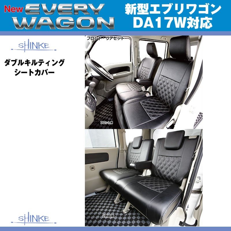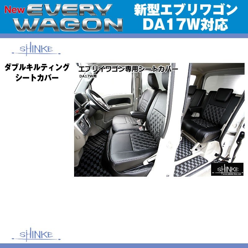 【ブラック】SHINKE シンケ ダブルキルティング シートカバー 新型 エブリイ ワゴン DA17 W (H27/2-)